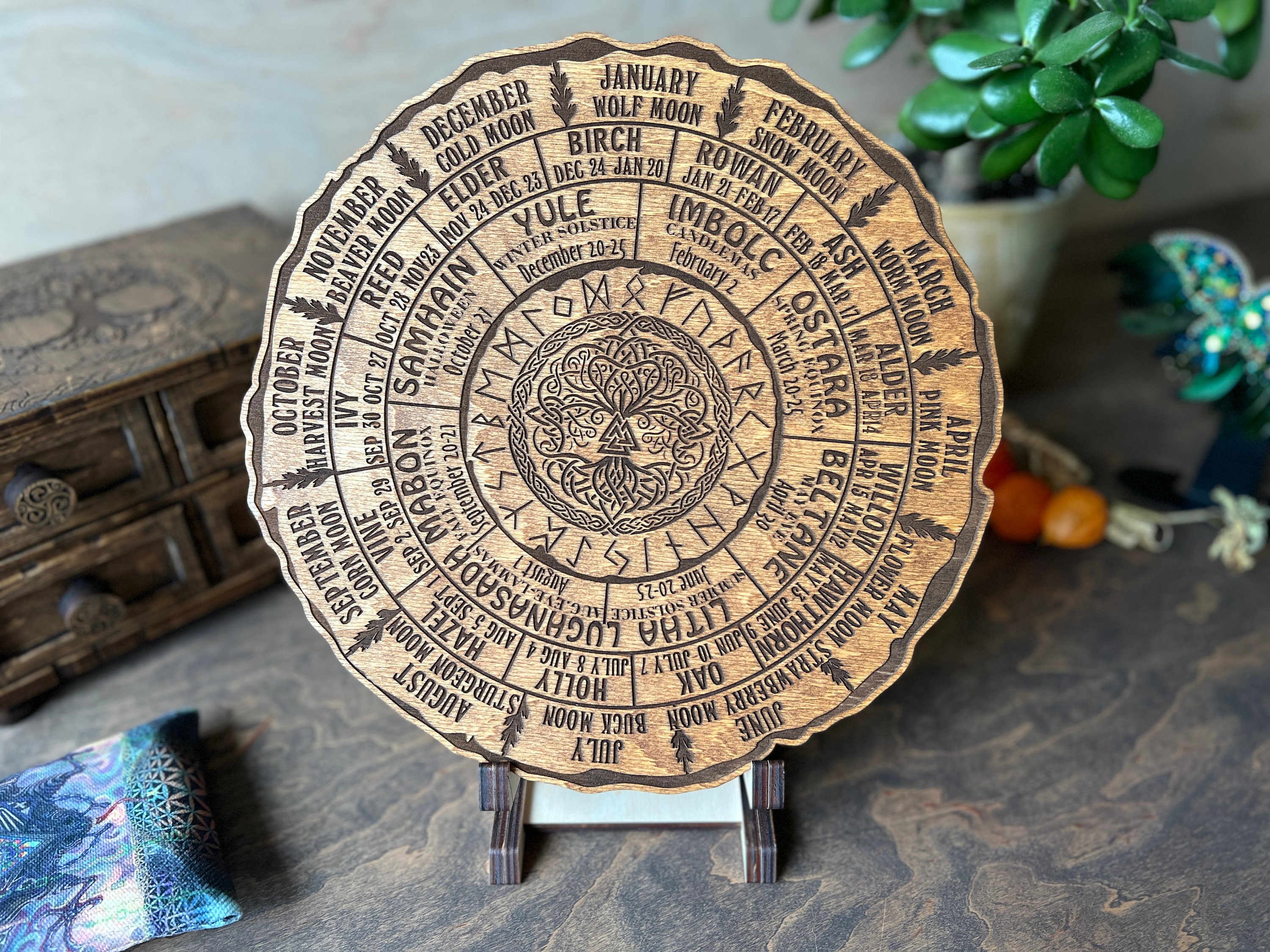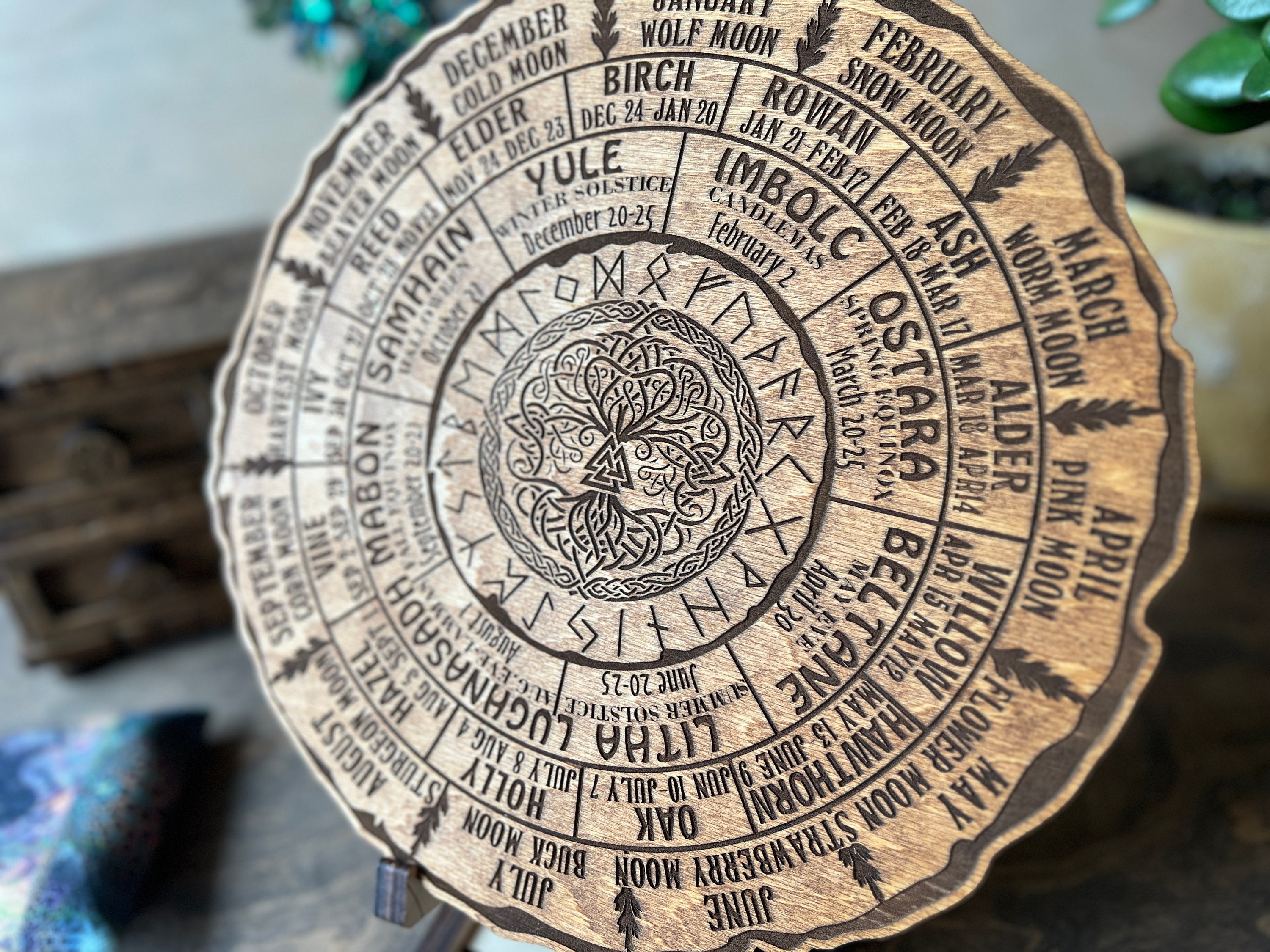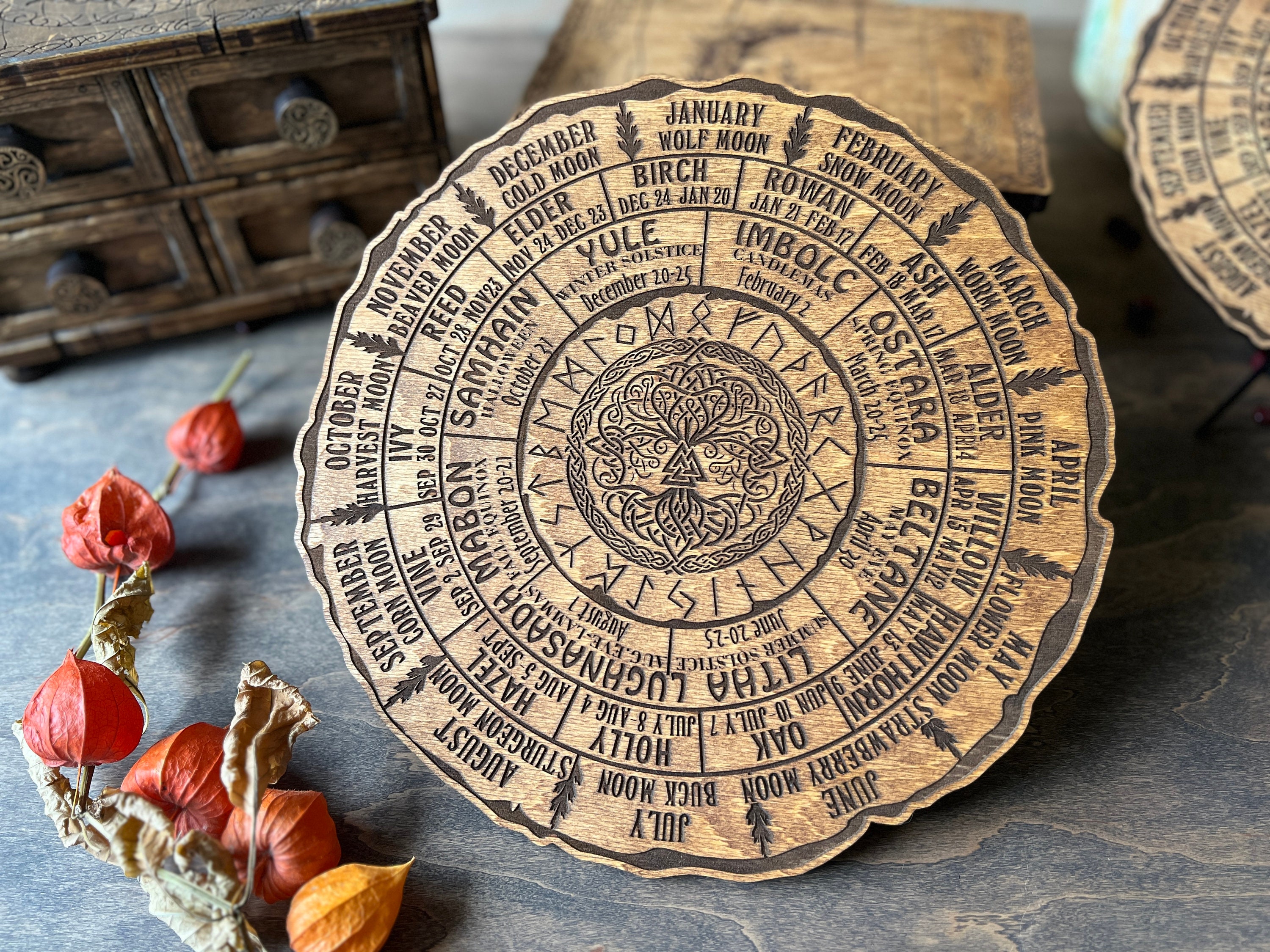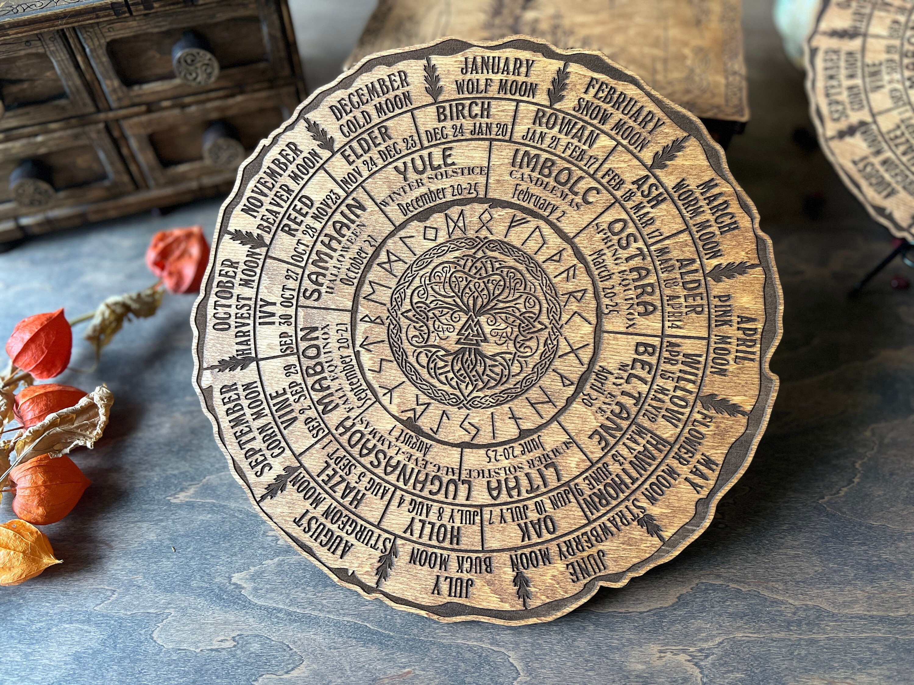 Engraved Celtic Tree of Life Calendar, Wheel Of The Year Wood Sign, Tree of Life, Pagan Calendar, Witchcraft, Witch Planner, Witch Altar, Witch Decor